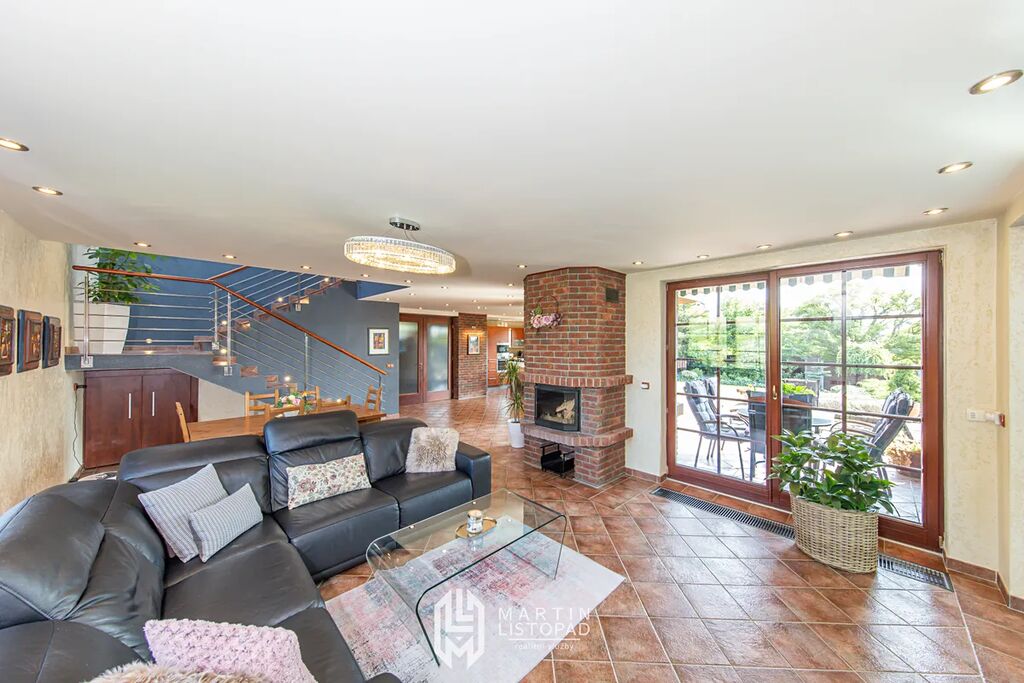 - Velkorysý obývací pokoj s jídelnou a krbem