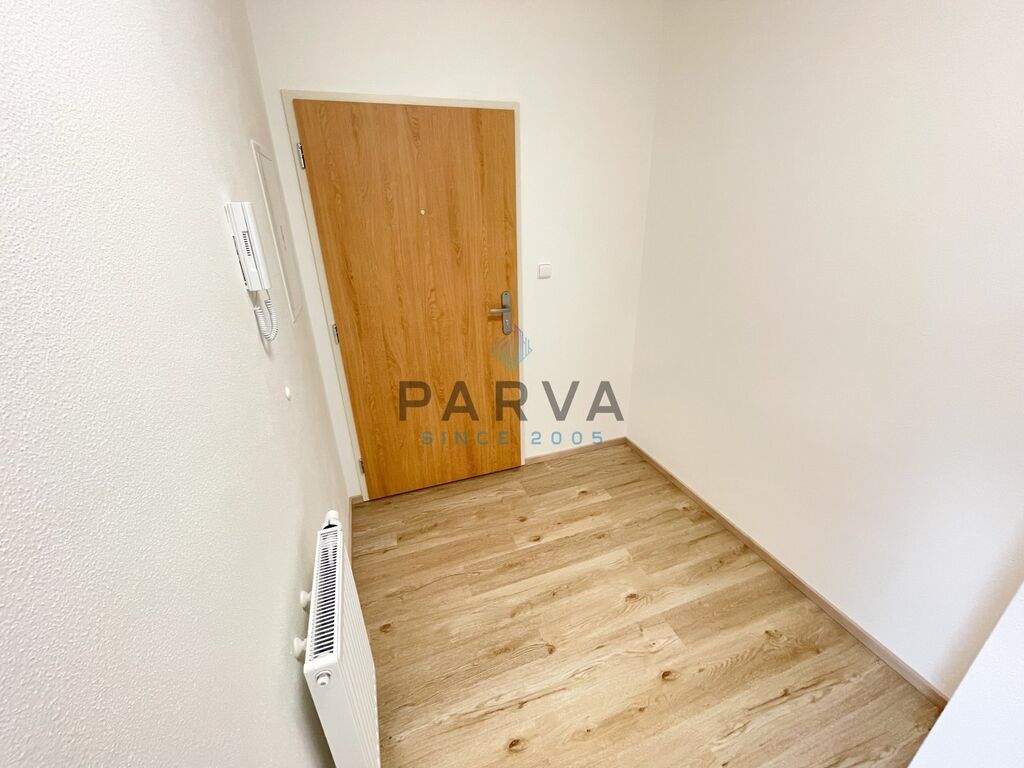 Byt disponuje vstupní chodbou, technickou místností s přípojkou na pračku a ložnicí. Kuchyňský kout je propojen s obývacím prostorem, odkud vedou francouzské dveře přímo na terasu . Koupelna je vybavena sprchovým koutem, umyvadlem, WC a elektrickým žebříkovým topením jako záložním zdrojem.