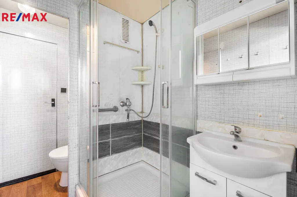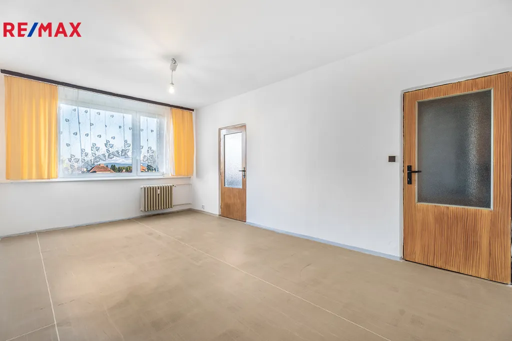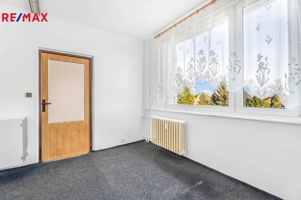 • Praktická dispozice: Chodba, komora, koupelna a samostatné WC, kuchyň, dva pokoje a prostorný obývací pokoj s přístupem do kuchyně a chodby.