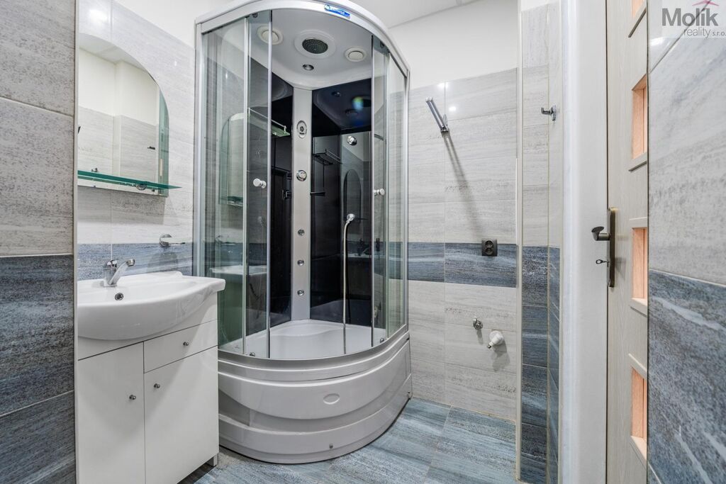 Samotný byt je rovněž kompletně zrekonstruovaný - nová koupelna se sprchovým koutem, samostatné WC, keramické obklady a dlažba, umyvadlo zabudované ve skříňce atd. V kuchyni nová kuchyňská linka, vč. zabudovaných spotřebičů a digestoře s osvětlením atd.