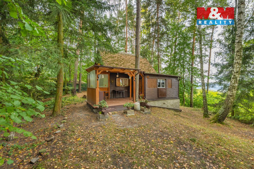 Nabízíme k prodeji útulnou dřevěnou chatu v okrajové části obce Markvarec, zasazenou do příjemného prostředí hustého lesa. Tato samostatně stojící chata disponuje dvěma nadzemními podlažími a malým sklepem, celkem nabízí tři místnosti a zastřešenou terasu, ideální pro relaxaci. Chata se nachází na pozemku Lesů ČR s nájemní smlouvou a nabízí užitnou plochu 45 m² na pozemku o rozloze 36 m². Přestože nemá zavedenou vodu a je vybavena chemickým WC, její poloha v blízkosti koupaliště a dobrá dostupnost z Loun i Žatce z ní činí ideální místo pro víkendové pobyty. Vhodná pro milovníky přírody hledající klid a únik od městského shonu.