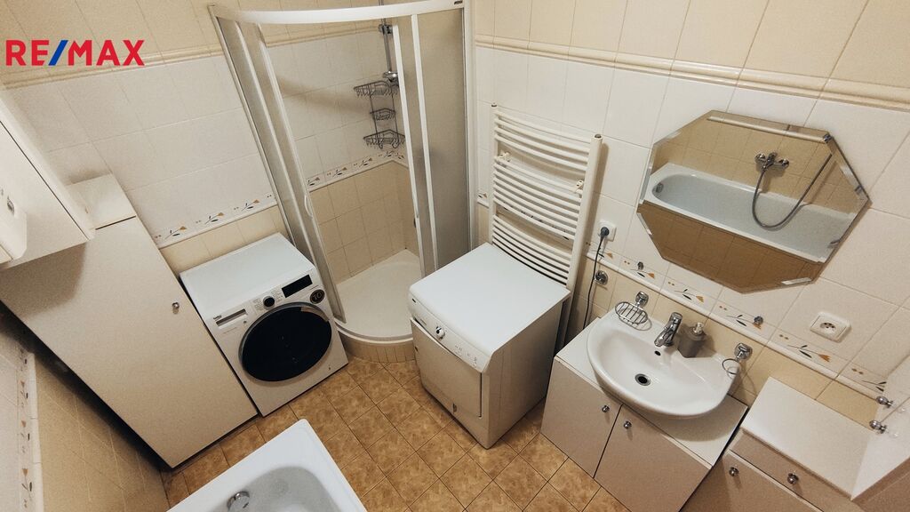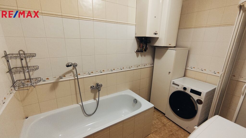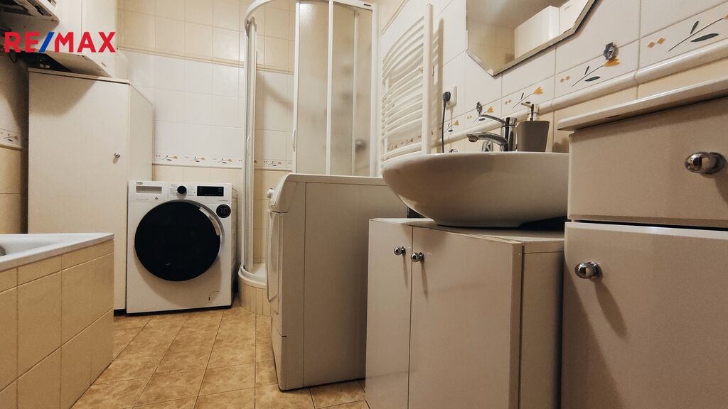 Interiér je vybaven kuchyňskou linkou se sklokeramickou varnou deskou , digestoří, el. troubou, mikrovlnou troubou a lednicí. Součástí je oddělená toaleta a koupelna s vanou, sprchovým koutem, pračkou a sušičkou. V chodbě je prostor využit vestavnou skříní. Oddělená ložnice se vstupem na lodžii je vybavena manželskou postelí. Vytápění a ohřev vody je zajišťováno plynovým kondenzačním kotlem přímo v bytě. V bytě je laminátová podlaha a okna jsou plastová, dvojskla s vnitřními žaluziemi z roku 2004.
