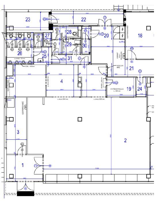 Součástí prostoru je také sociální zařízení (toalety), což zajišťuje plnohodnotné zázemí pro pracovní činnost.