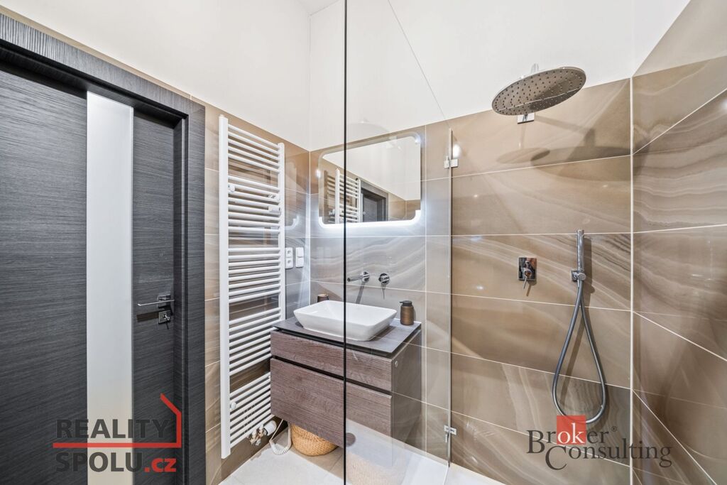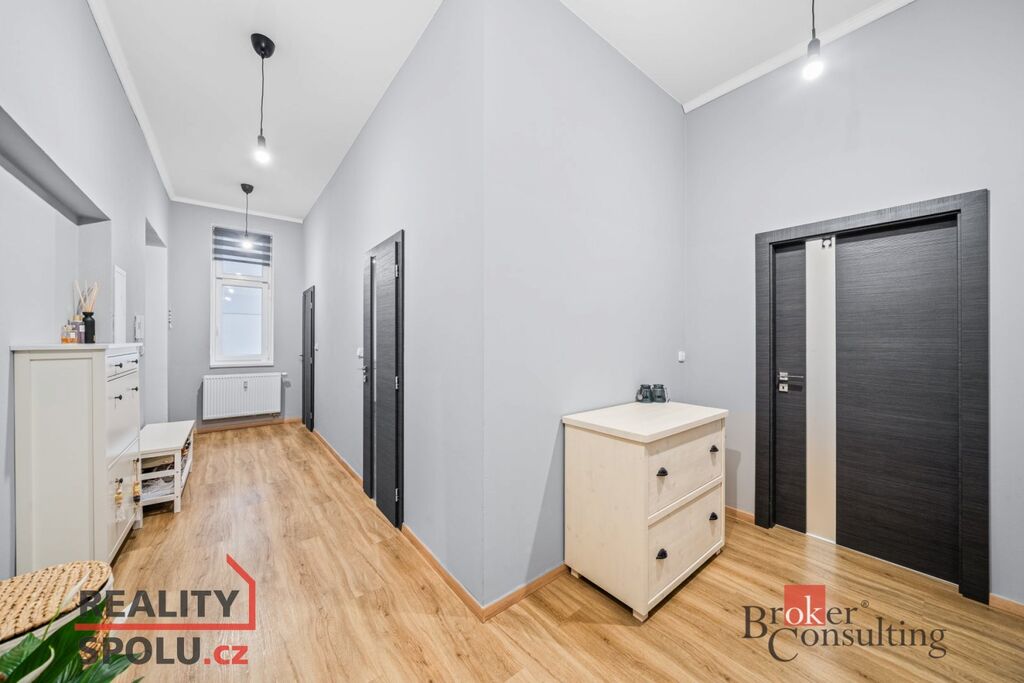 Moderní designová kuchyňská linka nabízí dostatek úložného místa i pracovní plochy. Prostorná koupelna má vanu i sprchový kout, WC je samostatné. V obytných místnostech jsou vinylové podlahy – praktické, odolné a příjemné na užívání. Dům vytápí vlastní plynový kotel pro celý objekt, což znamená stabilní komfort a efektivní provozní náklady. Okolí postupně prochází rekonstrukcemi, ulice získává nový lesk a udržuje si pověst prestižní a velmi žádané adresy s rychlou dostupností do centra, MHD, škol i kompletní občanské vybavenosti.
