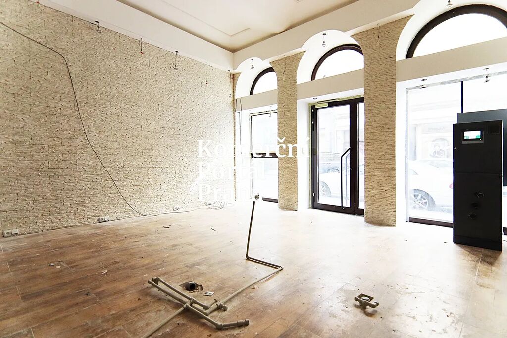 Prostor se nachází v přízemí, mezipatře a suterénu budovy a disponuje velkými výlohami s přímým vstupem z ulice. Provize RK je 1× měsíční nájem + DPH.