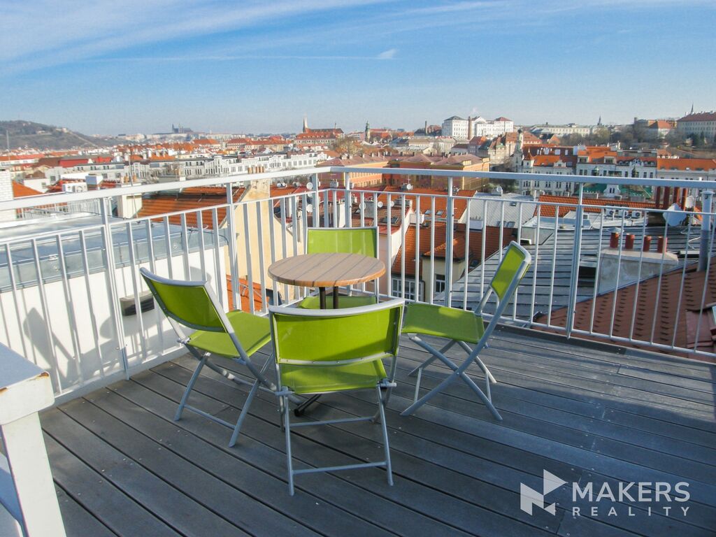 Nabízíme k dlouhodobému pronajmu krásný světlý mezonetový byt 3+kk o celkové ploše 88m2 + 9m2 terasa na střeše domu, který se nachází v 5. podlaží v nově zrekonstruovaném domě pod Vyšehradem, kousek od Vltavy a jednu stanici tramvaje od metra Palackého náměstí.