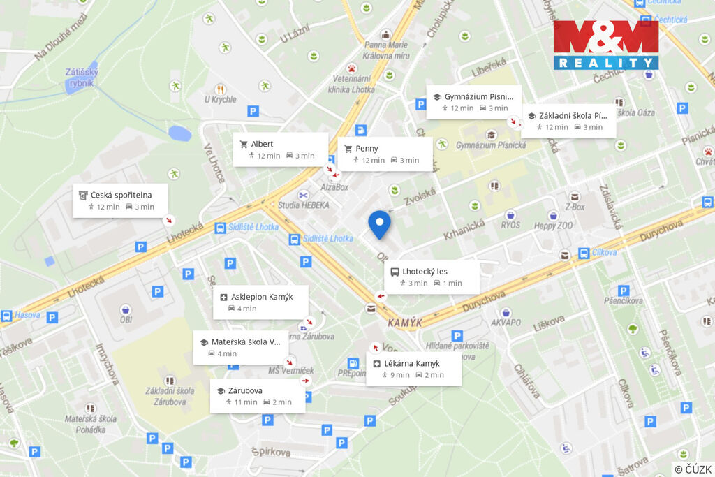 Byt se nachází v klidné a vyhledávané lokalitě Praha – Kamýk, která nabízí kompletní občanskou vybavenost v docházkové vzdálenosti – mateřské a základní školy, obchody, zdravotní střediska i dětská hřiště. Díky výbornému dopravnímu spojení jste autobusem do 15 minut na stanici metra Kačerov.