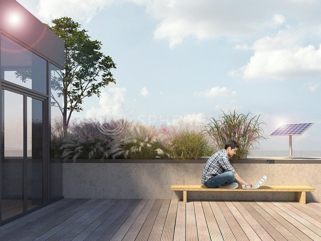 Nejvyšší podlaží Skylight tvoří business terasa se zelenou oázou pro relaxaci a fantastickým výhledem na Petrov a Špilberk. Terasa je lemována fitness dráhou pro udržování kondice (viditelná na vizualizacích) a nabízí také relax studio pro zklidnění a meditaci. Středobodem budovy je 9-patrové prosklené atrium, které vpouští do interiéru denní světlo (odtud jméno budovy Skylight).