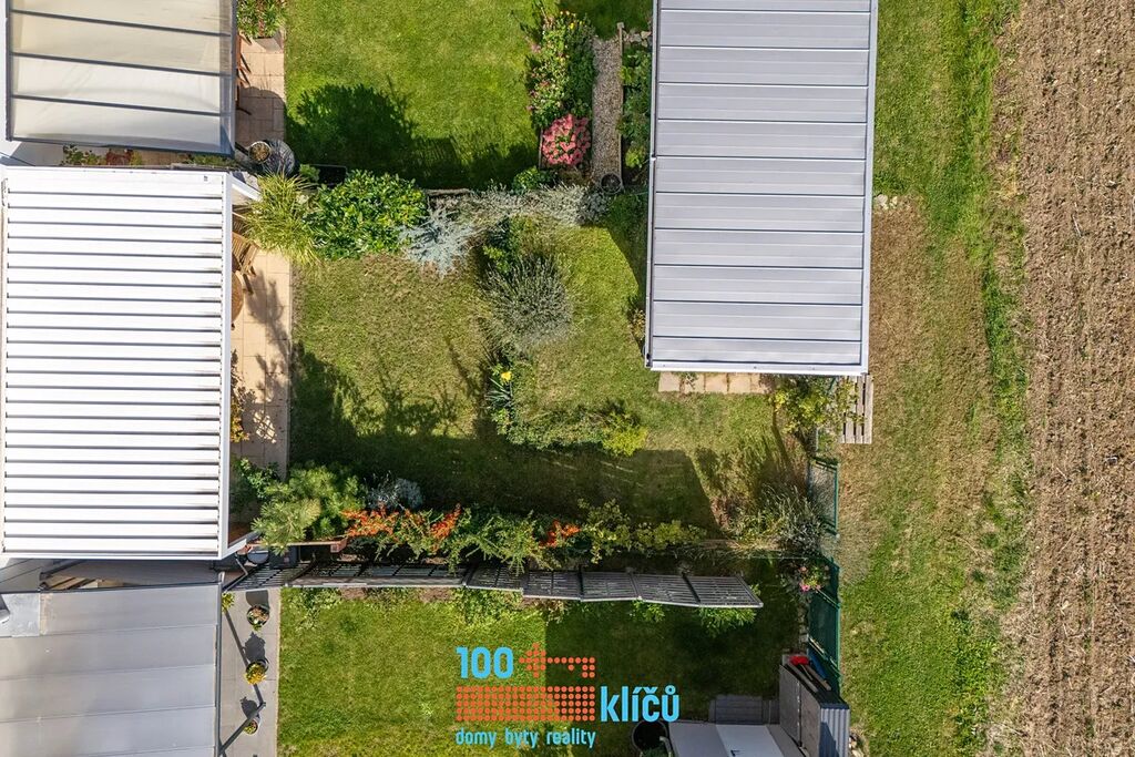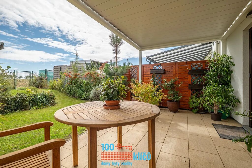 K relaxaci a posezení venku slouží prostorná terasa a zahrádka o velikosti 75 m². V rohu zahrady je umístěn i zahradní domek pro dostatek úložného prostoru.