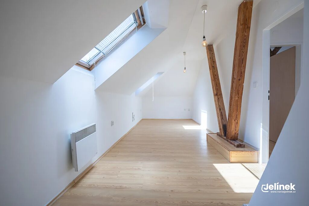 Prostorný byt o dispozici 4+1 a celkové ploše 107,84 m², který se nachází ve 3. nadzemním podlaží a podkroví bytového domu na ulici 1. máje v Poličce.