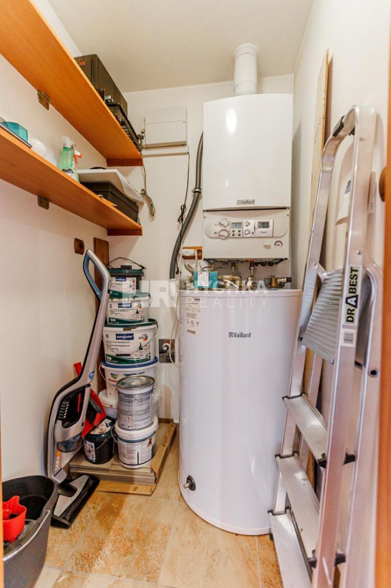 Byt je plně zařízen novým nábytkem a disponuje dostatkem úložných prostor díky vestavěným skříním v předsíni a ložnici. Prostorný obývací pokoj je vybaven krbem na dřevo, kuchyňskou linkou se spotřebiči a jídelní zónou. Z hlavní ložnice (20 m2) je přímý vstup do koupelny s masážním sprchovým koutem a pračkou. V předsíni se nachází samostatné WC.
