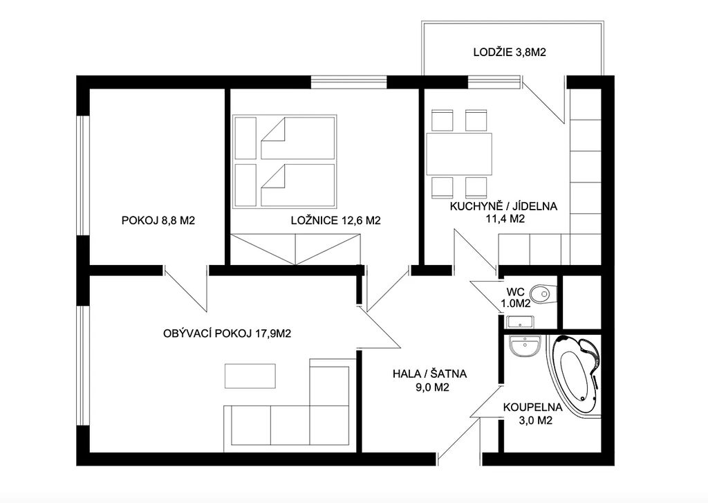 V exkluzivním zastoupení majitelů Vám nabízíme k prodeji moderní bytovou jednotku v osobním vlastnictví s dispozičním řešením 3+1 a celkovou výměrou 70,2 m² skládající se z užitné plochy bytu (65,1 m²), balkonu (3,8 m²) a sklepa (1,3 m²).