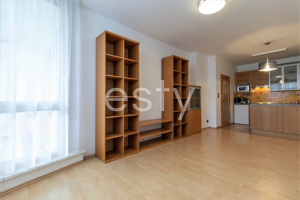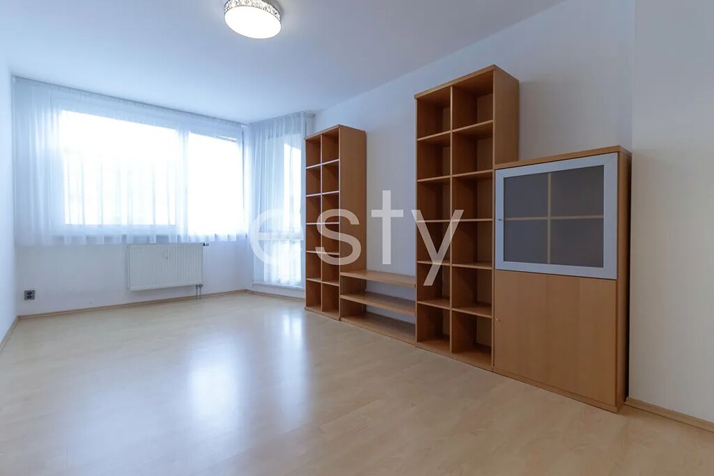Obývací pokoj s kuchyňským koutem (24m²) je částečně vybaven TV stolkem a stěnou se skříňkami, kuchyňskou linkou se spotřebiči (mikrovlnná trouba, nová myčka, trouba zn. Whirlpool, lednička Electrolux, digestoř, sklokeramická varná deska). Z této místnosti je přístup na prostornou lodžii (5,1m²). Součástí bytu je i sklep (2,3 m²).