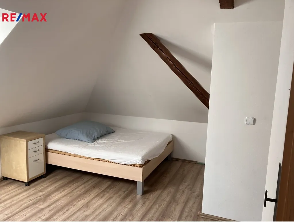 dva pokoje,kuchyňská linka, koupelna s WC a dále pak dalšími půdními prostory které navazují a jdou tak rozšířit o další pokoje případně pro jiné využití.