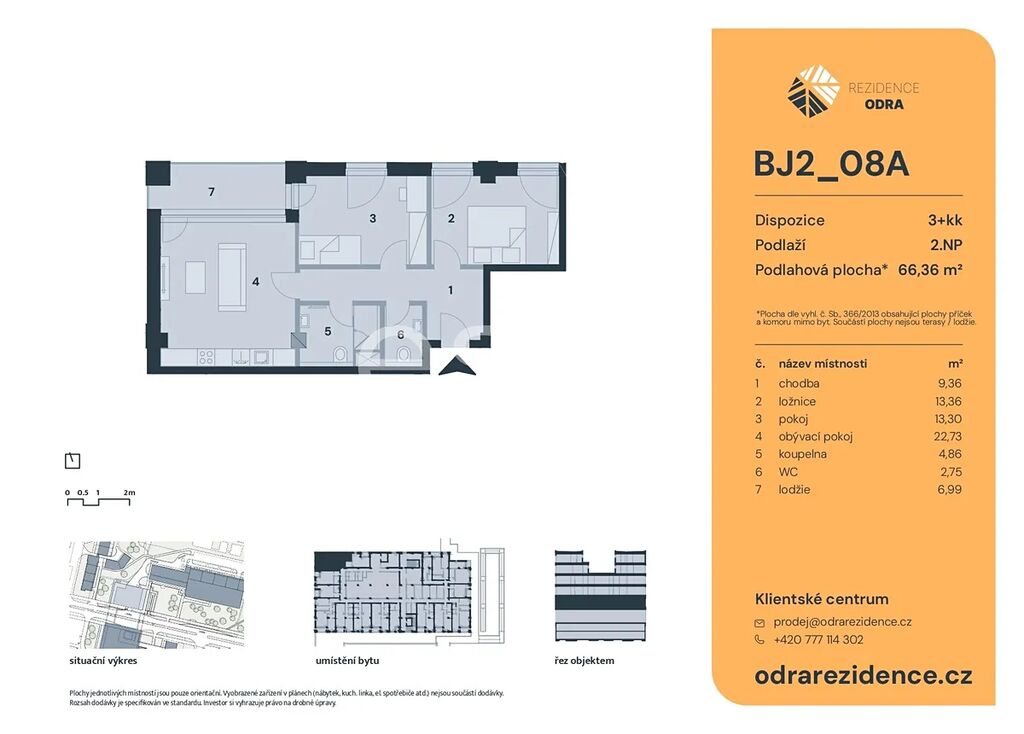 Hledáte nový domov v klidné a přitom skvěle dostupné lokalitě? Rezidence Odra je moderní projekt s duší i budoucností, který vzniká na místě bývalého obchodního centra v pražských Bohnicích. Nyní vám nabízíme konkrétní volnou jednotku 3+kk o ploše 66,36  m², nacházející se ve 2. nadzemním podlaží budovy ve fázi dokončení.