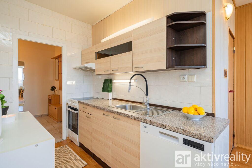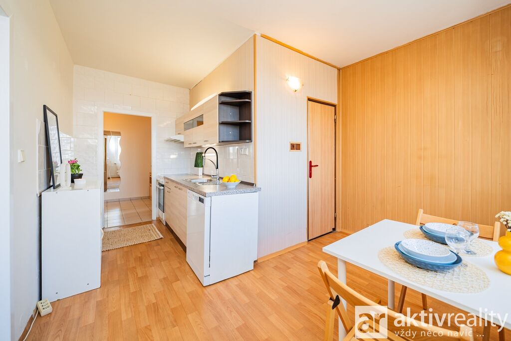 Světlý byt 3+1 v osobním vlastnictví v 5. patře zatepleného panelového domu. Podrobné informace najdete na webu viz video. Hlavním benefitem je lodžie přístupná z největšího pokoje, orientovaná do volné krajiny. Díváte se z ní přes přilehlou zeleň směrem k polím, bez oken naproti. Byt je udržovaný a obyvatelný ihned, vhodný i pro okamžité pronajímání. V kuchyni je novější linka včetně myčky a plynového sporáku, podlahy tvoří modernější PVC, okna jsou plastová. Koupelna a WC prošly úpravou, ale na původním umakartovém jádru. Elektroinstalace je také původní (hliník). V bytě je zavedeno optické vysokorychlostní připojení k internetu. Dům má zateplenou fasádu, moderní výtah a upravené vstupy. V okolí je zeleň a dětské prvky, parkování v přilehlých ulicích je dobré; u nedalekého Tesca navíc vzniká parkovací dům (plánované otevření konec léta 2026). Lokalita Na Výsluní nabízí každodenní komfort: supermarket v ulici, školy a školka v docházce, přímé spojení do Prahy autobusem i vlakem (cca 35–45 min dle spoje). Podrobné informace najdete na webu viz video.