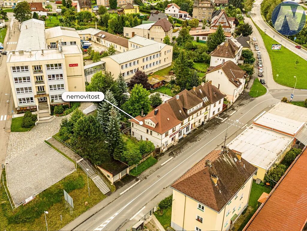 Nabízím prodej rodinného domu o dispozici 7+1 se zahradou (356 m2), garáží a prodejnou (nebytovou jednotkou - 65 m2) v přízemí, ve městě Vimperk, u autobusového nádraží. Dům je zděný, má 3 podlaží a je částečně podsklepen. V přízemí je nebytový prostor s vchodem z ulice, bývalý obchod - řeznictví (vybavený) se skladem a sociálním zázemí. Dvoupodlažní rodinný dům, nacházející se nad prodejnou, má dispozici 7+1 a podlahovou plochu 119 m2 + balkón 7 m2. Z 1. patra je východ na zahradu. V 2. patře jsou 3 ložnice a každá má svou šatnu. Dům má nová plastová okna, vytápěn je plynovým kotlem s rozvodem do radiátorů. Obchod má vlastní měřič elektřiny. Nemovitost je připojena na obecní vodovod a kanalizaci. Doporučuji prohlídku. S financováním Vám rádi poradíme. Můžeme nabídnout návrh řešení rekonstrukce interiéru od bytové designérky a okamžitou rekonstrukci k nastěhování tzv. na klíč podle prezentovaných vizualizací. Více informací u makléřky.