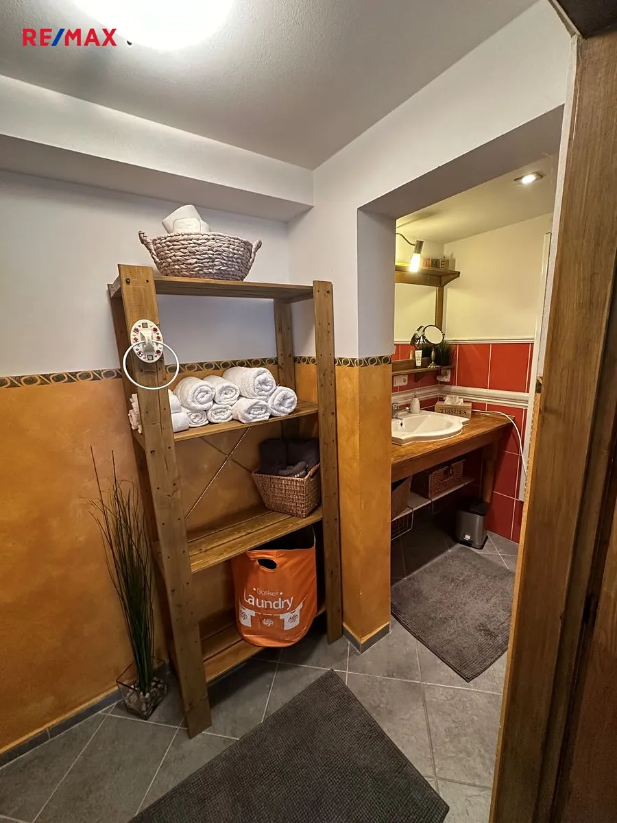 • koupelna s velkým zděným sprchovým koutem, umyvadlem a přípojkou na pračku
