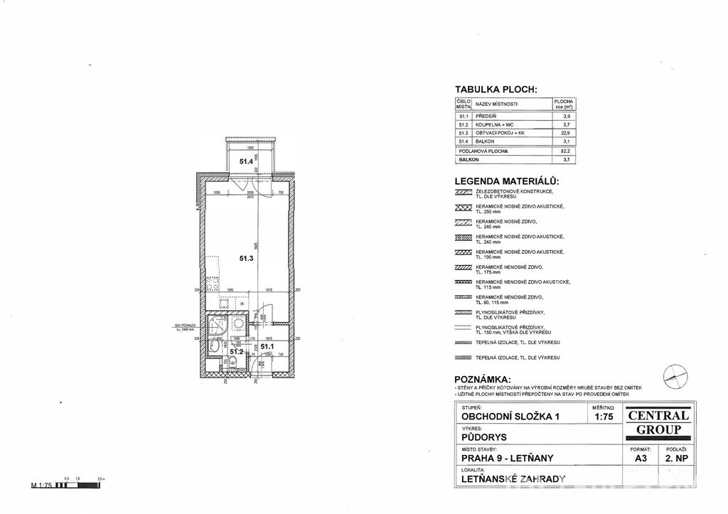 Podlahová plocha 32,2 m² • Balkon 2,1 m² • Sklep 2,7 m² • 1 garážové stání