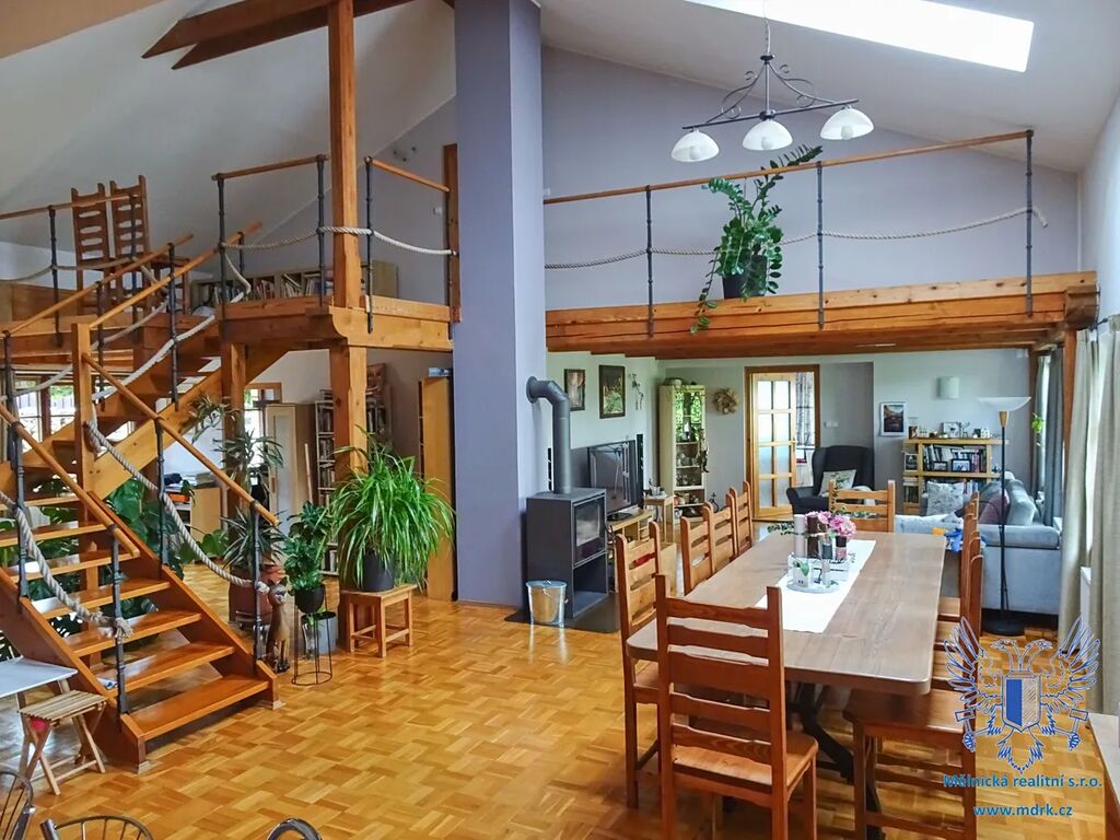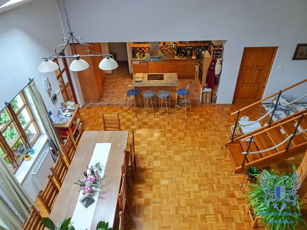 První obytná část využívaná prodávajícím s užitnou plochou cca 423 m2 vás na první pohled okouzlí velkým obývacím pokojem s jídelnou a kuchyňským koutem s velkorysou plochou cca 113 m2, přičemž nepřehlédnutelným prvkem této místnosti je dřevěné schodiště vedoucí na galerii, která dodává celému prostoru nevšední ráz. Tato část se dále skládá ze čtyř ložnic, dvou koupelen (v jedné vana - sprcha, dvojumyvadlo, ve druhé sprcha - WC, bidet, umyvadlo), sauny, velké šatny, prádelny, spíže, třech skladů, samostatné toalety s bidetem a umyvadlem, samostatného WC s umyvadlem a chodeb.