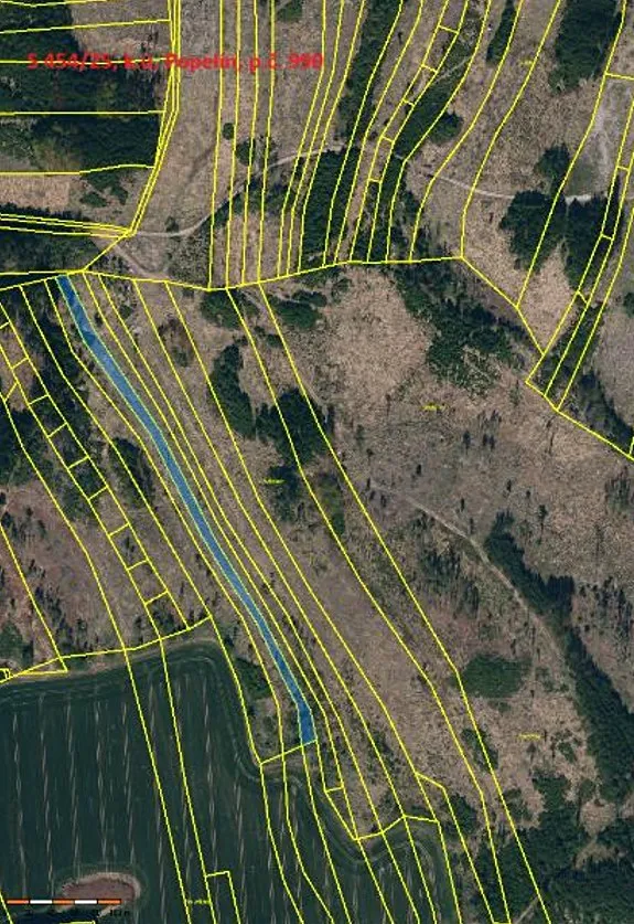 Jedná se o prodej lesního pozemku parc. č. 990 o výměře 4409 m2, úzkého protáhlého a nepravidelného tvaru, uvnitř velkého lesního útvaru tvořeném pozemky jiných vlastníků, zarostlého převážně listnatými stromy a keři.