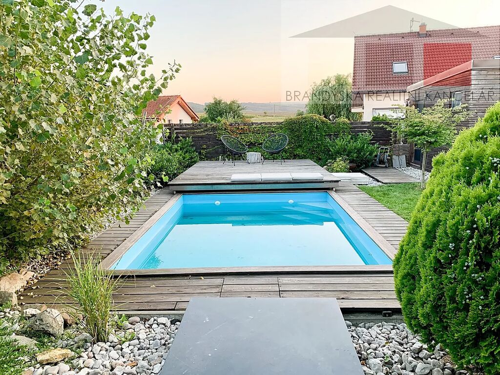 Nabízíme k prodeji samostatný RD 3+kk v městysu Březno u Mladé Boleslavi, který je situován v nové zástavbě směrem na Novou Telib. Vnitřní dispozice domu je: vstupní chodba (5,8m2), obývací pokoj s kuchyňským koutem (24,2m2), ložnice (9,2m2), dětský pokoj (12,3m2), koupelna s WC (6,0m2). Z obývacího pokoje je vstup na zastřešenou terasu s JZ orientací, která je podsklepena. Na zahradě je instalován zapuštěný vyhřívaný bazén 3x4m a zahradní domek 24m2. Dům je vyzděn systémem Porotherm 440mm, byl dokončen v roce 2009 a po celou dobu byl pečlivě udržován. Topení je řešeno elektrokotlem s radiátory a krbovými kamny v obývacím pokoji, ohřev TUV bojlerem. Dům je napojen na elektřinu, vodovod a kanalizaci. PENB G dle vyhlášky č. 264/2020Sb. Velmi pěkné místo nedaleko lesa, v městysu je škola, školka, obecní úřad, pošta, lékař, obchod, hospoda, kompletní občanská vybavenost je v 5km vzdálené Mladé Boleslavi. Možnost financování části kupní ceny hypotékou, kterou pro Vás rádi vyřídíme.