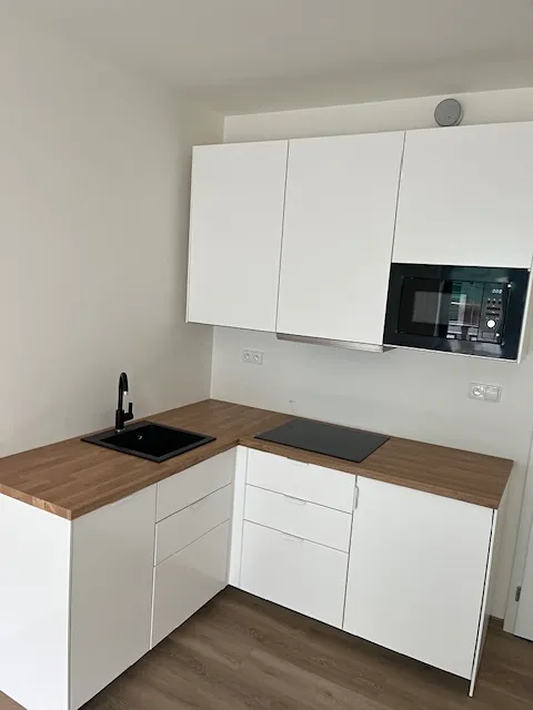 Nabízíme zcela novou jednotku dispozičně řešenou jako 1+kk se slunnou terasou (ateliér), orientovanou na jih směrem do zahrady. Nachází se v novém moderním funkcionalistickém domě který byl stavěn ve vysokém standardu. Jednotka je vybavena hliníkovými okny s předokenními žaluziemi, bezpečnostními dveřmi, kompletně vybavenou kuch. linkou, šatní skříní. Možno ponechat i nové rozkládací lůžko dle fotografie.