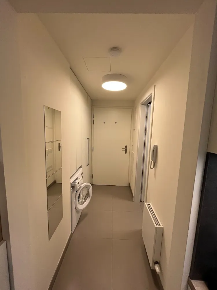 V bytě se nachází obytná místnost s moderní kuchyňskou linkou (vč. spotřebičů, lednice), koupelna se sprchovým koutem a toaletou, chodba s pračkou a vestavěnými skříněmi a prostorná lodžie, která nabízí příjemné posezení. Součástí bytu je sklep o velikosti 2,5 m².