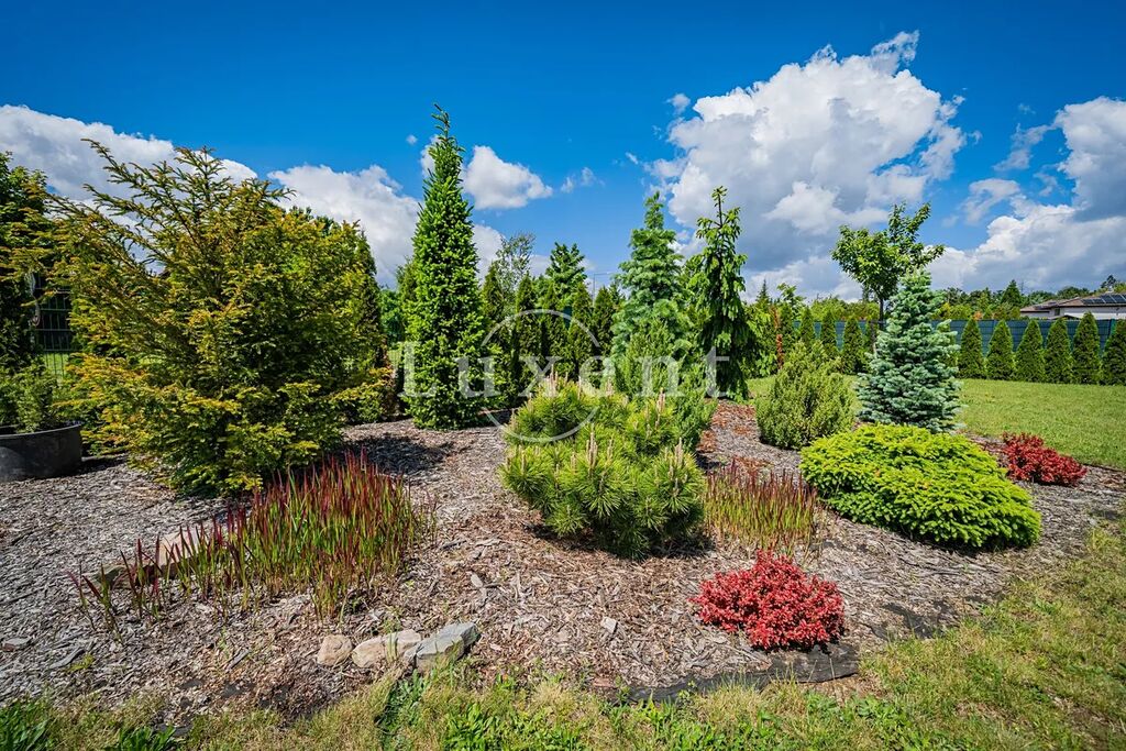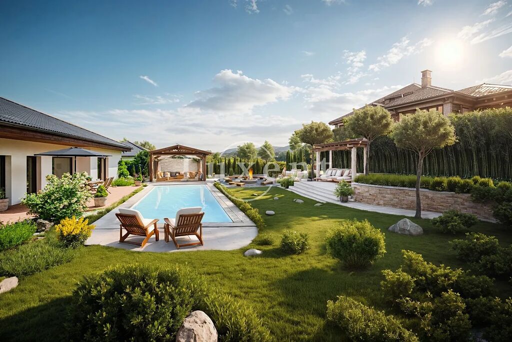 Krásná zahrada o velikosti 1492 m² je z části osázená. Na pozemku je možné vybudovat další altán s letní kuchyní a bazén (přípojky jsou již v zahradě zabudované). Před obývacím prostorem je velká terasa. Zahradní jímka o velikosti 7m³ na dešťovou vodu slouží jako rezervoár vody na zalévání.