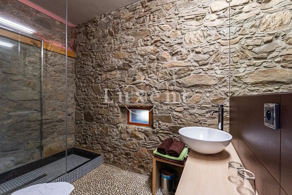 Dům se skládá ze dvou samostatných částí s ubytovací kapacitou 24 lůžek. Hlavní část domu v 1. NP: restaurace s barem, dva typy kuchyně, technické a sociální zázemí, spojovací chodby a další. Ve 2. NP je pak 5 pokojů vždy s koupelnami, prostorná chodba a točité schodiště. V druhé části nemovitosti jsou dvě samostatná designová studia rovněž s koupelnami a vlastním soukromím. Každé má svůj el. obvod a lze v něm vytvořit nezávislé studio s kuchyňkou, případně designový mezonet se samostatným vstupem. Ke spodnímu studiu náleží terasa 18 m² a je zde příprava na wellnes se saunou. V 1. i 2. NP lze instalovat klasický krb. Bez jakýchkoliv úprav se nemovitost může stát praktickou investicí firem i rodinným zázemím či chalupou.