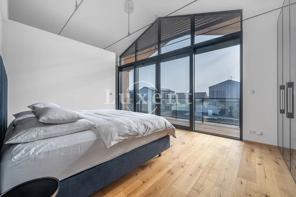 2.NP nabízí velkorysou ložnici (20 m²) s prosklením až do štítu domu a HS portálem, který umožňuje vstup na lodžii ( 11,6 m2) s krásným výhled. Součástí ložnice je koupelna ( 10,6 m²) s vanou, sprchovým koutem, dvěma umyvadly a samostatnou toaletou. Na patře jsou další tři ložnice, ke kterým naleží další koupelna s vanou, sprchovým koutem, dvěma umyvadly a toaletou.