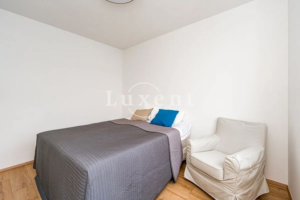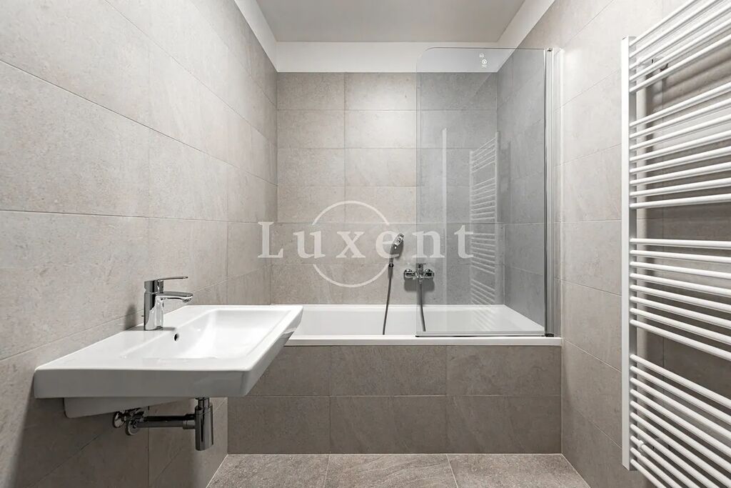 V přízemí domu se nachází předsíň, koupelna, prádelna, tech. místnost a velký obývací pokoj s kuchyňským koutem (42 m2) masivně prosklený do zahrady s terasou. V přízemí domu je také integrovaná garáž. V patře je pak hlavní ložnice s vlastní koupelnou a šatnou, dva pokoje s druhou koupelnou a prostorná úložná komora. Chodba nad schodištěm je prosvětlena světlíkem. Více viz přiložené půdorysy. Na podlahách je kvalitní laminátová plovoucí podlaha (dekor dle domu) a keramická dlažba. Vybavení koupelen: Villeroy & Boch.