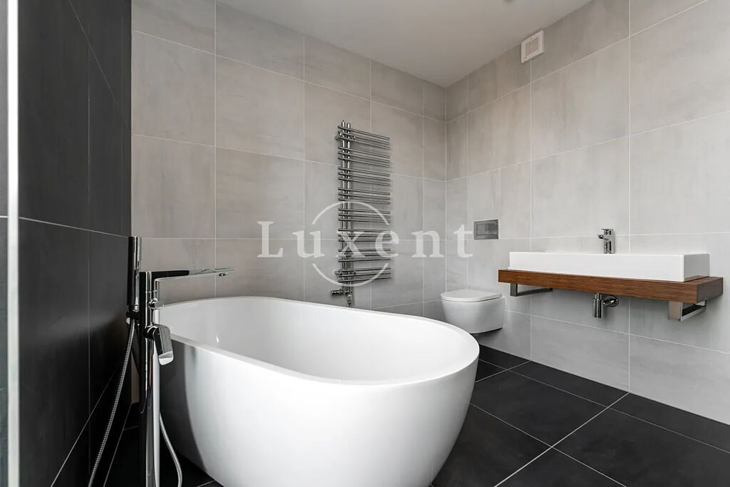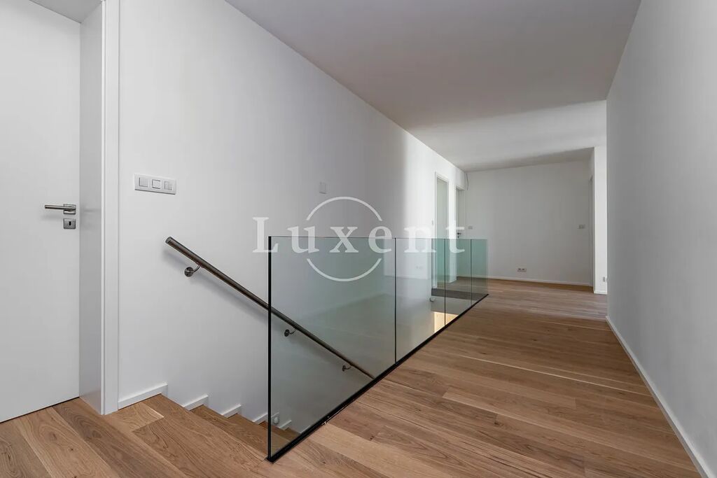 V 2.NP je hlavní ložnice (23,4 m2) s koupelnou, která nabízí volně stojící vanu, sprchový kout, toaletu (7,7 m2) a samostatnou šatnu (6,4 m2). Dále dvě velké ložnice, které mají vstup na balkon, pracovna (20,5 m2), koupelna (9,4 m2) , samostatná toaleta, chodba (22,5 m2), která má také vstup na balkon a možnost příjemného posezení.