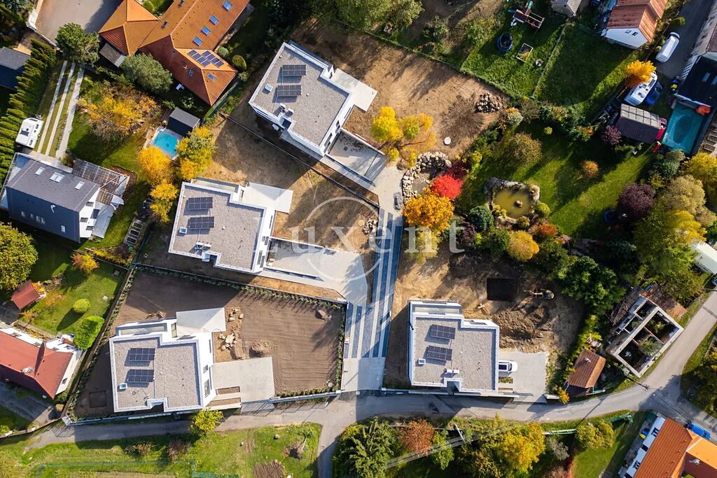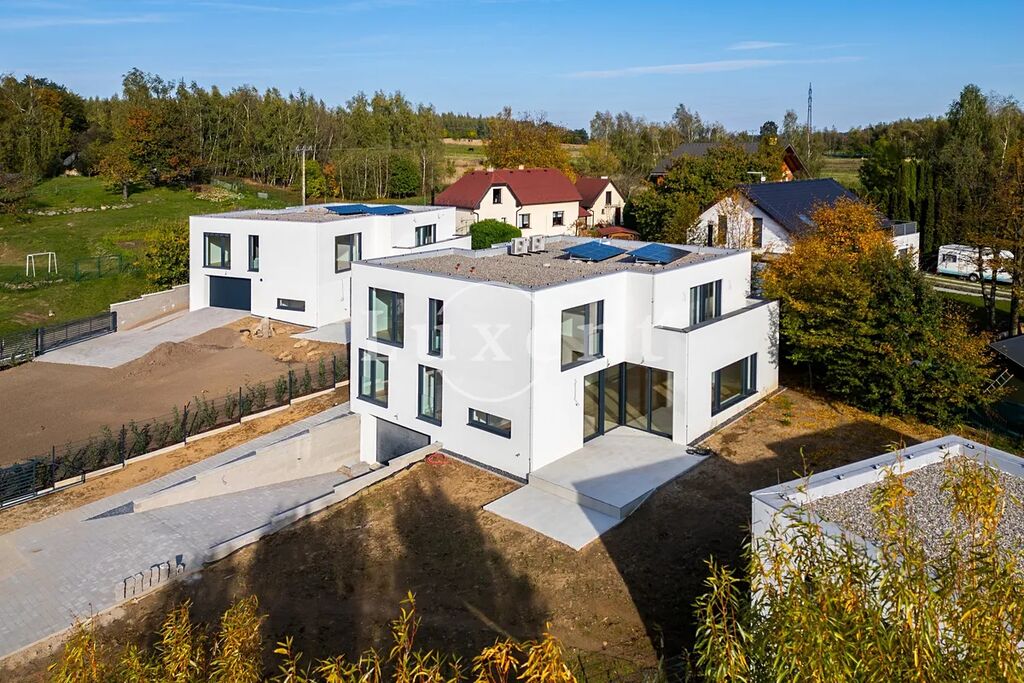 Vytápění domu je zajištěno tepelným čerpadlem vzduch - voda, podlahové vytápění, dřevěná okna s trojsklem a předokenními žaluziemi. Ve všech obytných místnostech klimatizační jednotky. Vjezdová posuvná brána na dálkové ovládání, el. ovládaná garážová vrata. Ve standardu domu je fotovoltaická elektrárna na střeše domu. Na zahradě domu bude vybudovaný suchý polder, který bude dotvářet terénní modelaci pozemku a jeho výhodou je atraktivita i bez vody.