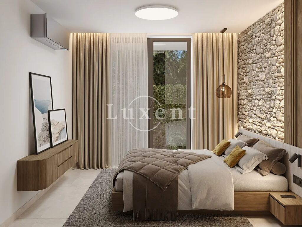 Apartmán o velikosti 68m2 nabízí 13 m2 zastřešených teras, 69 m2 nekrytých teras a zahrady, soukromý bazén o rozloze 23 m2 a technické zázemí o ploše 28 m2. Součástí ceny je také parkovací stání v podzemní garáži. Apartmán je součástí novostavby s pouhými třemi luxusními jednotkami.