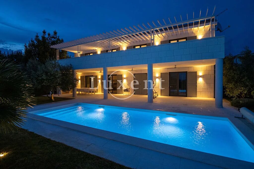 Nabízíme na prodej atraktivní kamennou vilu o velikosti 419 m2, rozdělenou do dvou podlaží, která je situovaná v první řadě u moře v jedné z nejprestižnějších lokalit centrálního Jadranu, nedaleko Zadaru. Vila je postavena na pozemku o rozloze 814 m2 a nabízí kombinaci decentního luxusu, absolutního soukromí a moderních technologií v harmonii s autentickým středomořským prostředím.