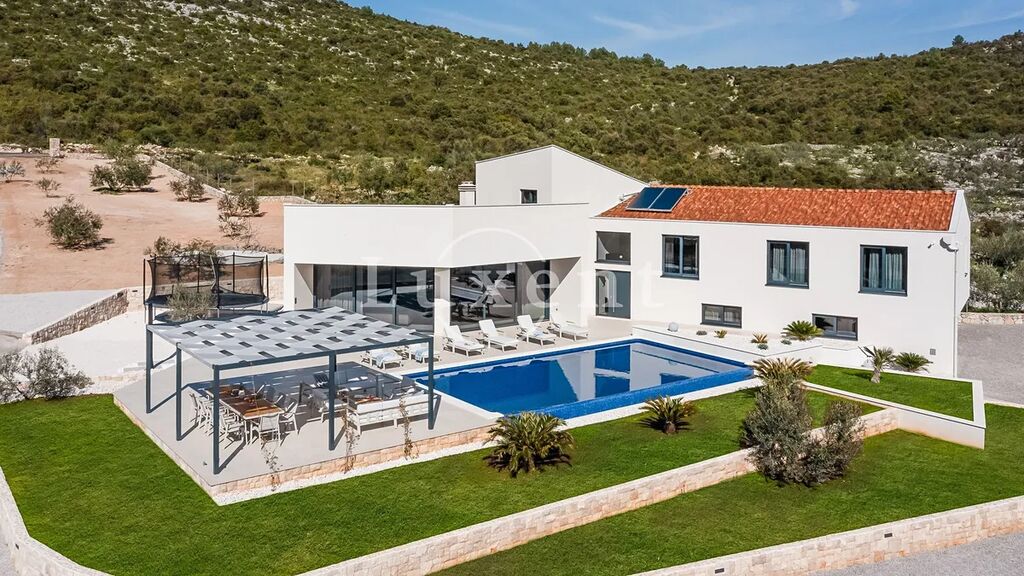 Na prodej je luxusní vila s moderním designem, která se nachází v klidné oblasti nedaleko chorvatského města Trogir. Díky svému elegantnímu zpracování, špičkovému vybavení a důrazu na detail představuje ideální volbu pro náročné klienty hledající komfortní zázemí pro letní dovolenou či investici do turistického pronájmu.