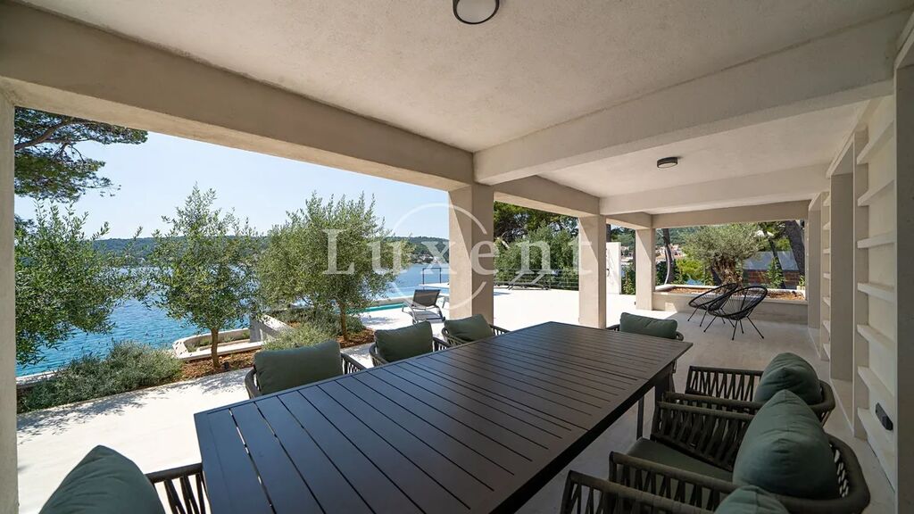 K prodeji nabízíme nově postavenou moderní luxusní vilu na ostrově Brač, která se nachází na výjimečném místě v první řadě u moře. Tato exkluzivní nemovitost je jen pár kroků od tyrkysově čistého Jaderského moře a oblázkové pláže, a nabízí ničím nerušený výhled na moře a okolní krajinu. Vila je situována na mírně vyvýšeném, dominantním pozemku o rozloze 1 100 m2, což zajišťuje naprosté soukromí a jedinečnou atmosféru přímořského luxusu.