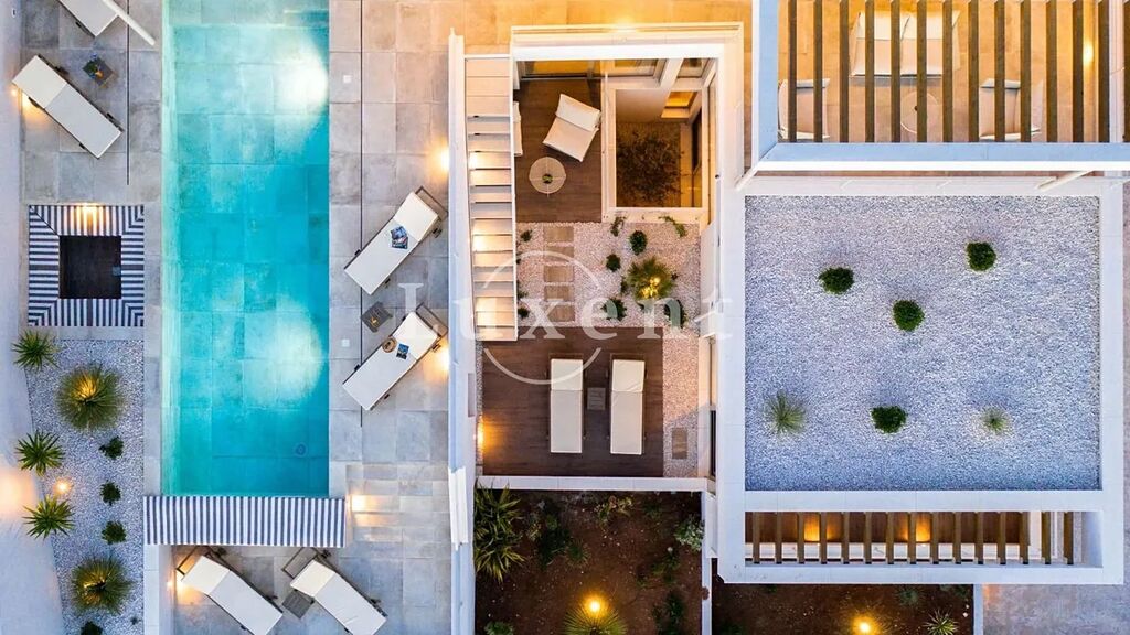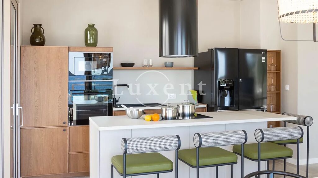 Tato elegantní třípodlažní vila nabízí užitnou plochu rozdělenou mezi přízemí a dvě obytná patra, která jsou propojena vnitřním schodištěm. Interiéry jsou světlé, vzdušné a vybaveny designovým nábytkem na míru, splňujícím vysoké standardy komfortu a estetiky.