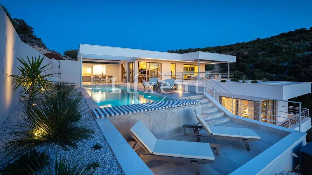 Nabízíme k prodeji nově postavenou moderní vilu situovanou v klidné a malebné zátoce nedaleko města Rogoznica, pouhých 100 metrů od moře. Nemovitost se nachází na pozemku o celkové výměře 727 m2, v mírném svahu s výhledem na moře, obklopena upravenou zahradou plnou středomořské zeleně a relaxačních zón.