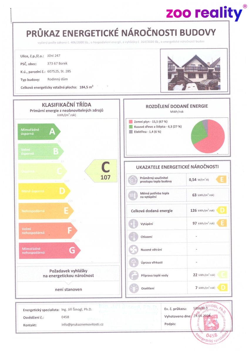 Ukazatel energetické náročnosti | 107 kWh/m2 za rok |