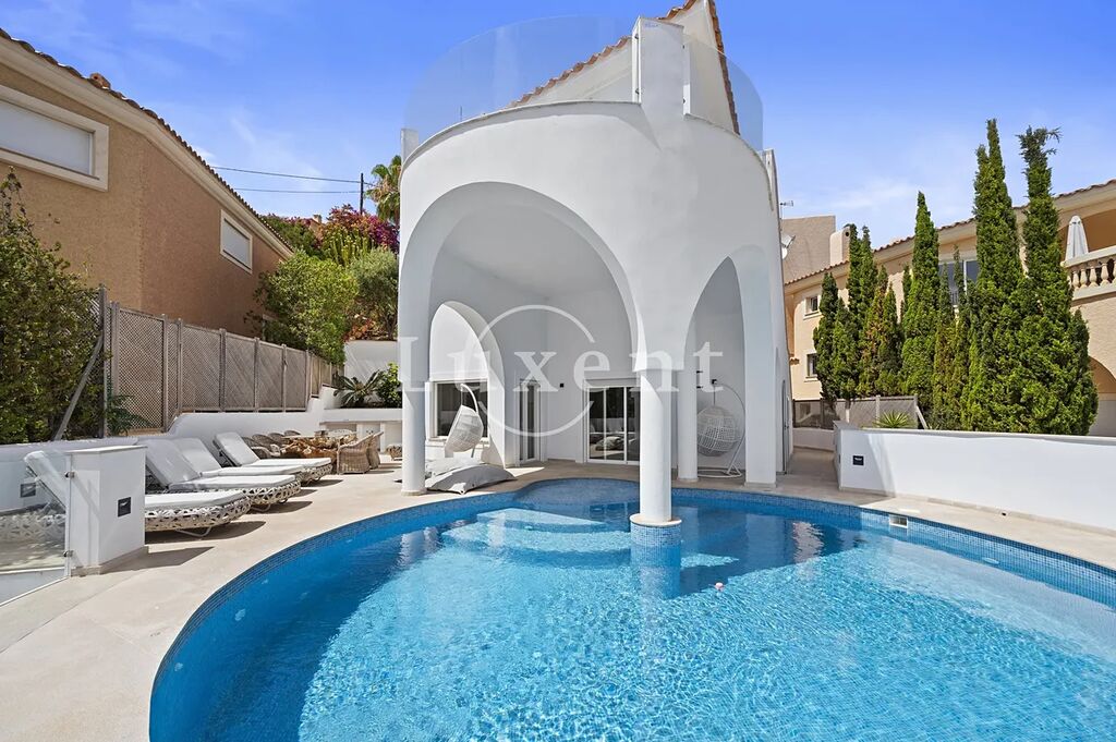 Nabízíme k prodeji luxusní 4+kk vilu na španělské Mallorce, která nabízí fantastický výhled na pláž Santa Ponsa, moře a Palmu.