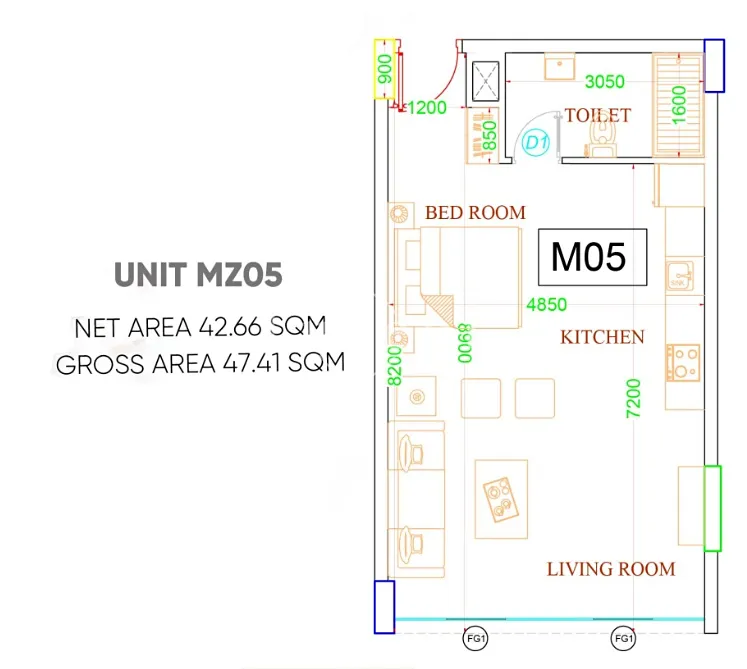 Apartmán má prostorný obývací pokoj s kuchyní a vybavenou ložnicí a je zpracován ve vysokém technickém standardu a s designovými prvky ve východním stylu. Jednotka je plně vybavená kvalitním nábytkem. Klimatizace je zde samozřejmostí.