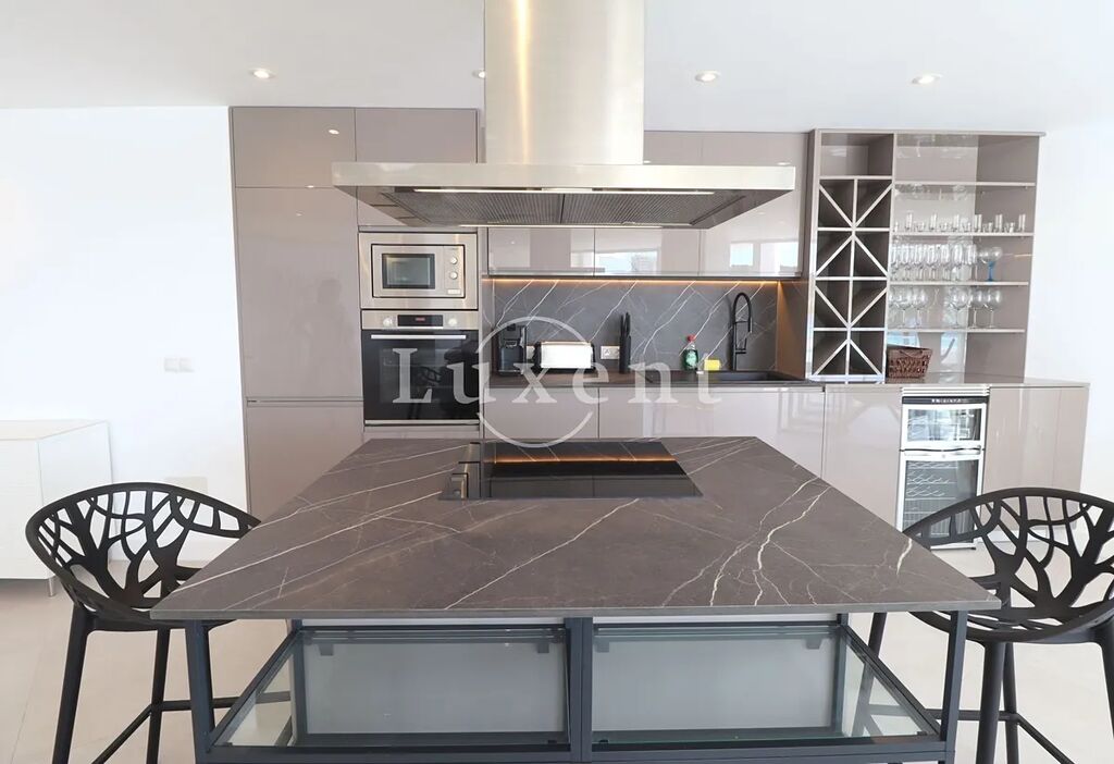 Větší 3+kk apartmán tvoří prostorný otevřený obývací pokoj s jídelním koutem a plně vybavenou kuchyní a balkonem o rozloze 15 m2, ze kterého si můžete vychutnat výhled na vlny Středozemního moře. Apartmán má dvě prostorné ložnice s vlastními koupelnami, přičemž jedna z nich je vybavena i saunou. Klimatizace je zde samozřejmosti. K apartmánům náleží také parkovací místo v podzemní garáži.