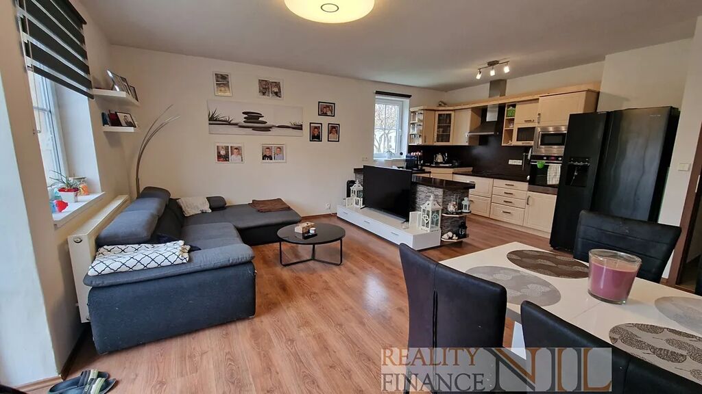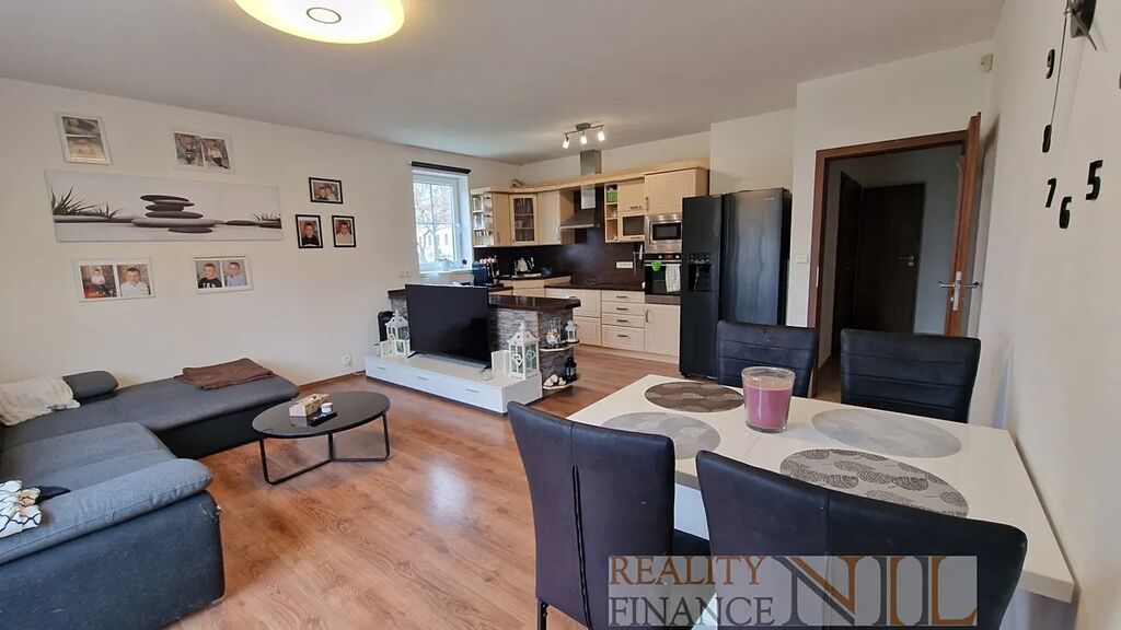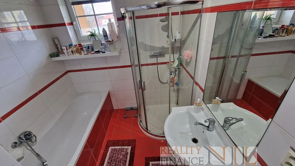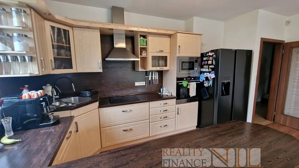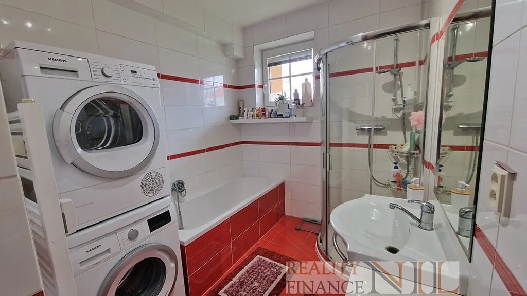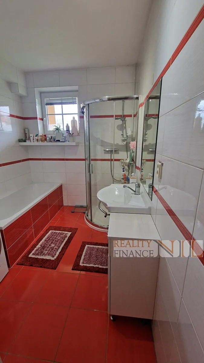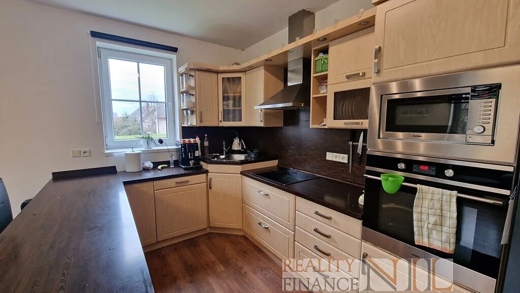 Byt je vybavený kuchyňskou linkou s vestavěnými spotřebiči - indukční varná deska, el. trouba, myčka, digestoř. Koupelna je vybavena sprchou i vanou, podlahy jsou plovoucí + dlažba v předsíni, WC je zvlášť. Topení a teplou vodu zajišťuje centrálně plynový kotel pro celý dům.