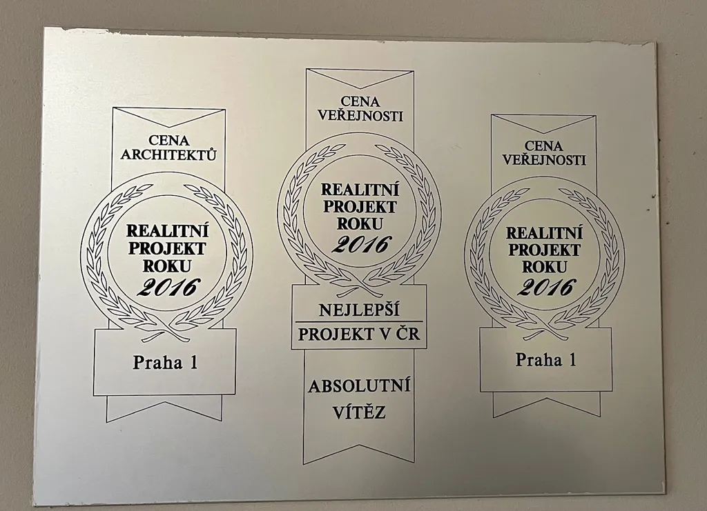 Výtah, Reprezentativní dům vyhrál cenu " Nejlepší projekt roku 2016 ", Recepce v domě, ve vnitrobloku domu relaxační zahrada