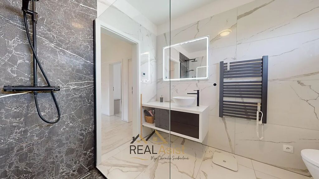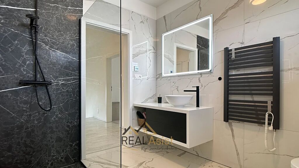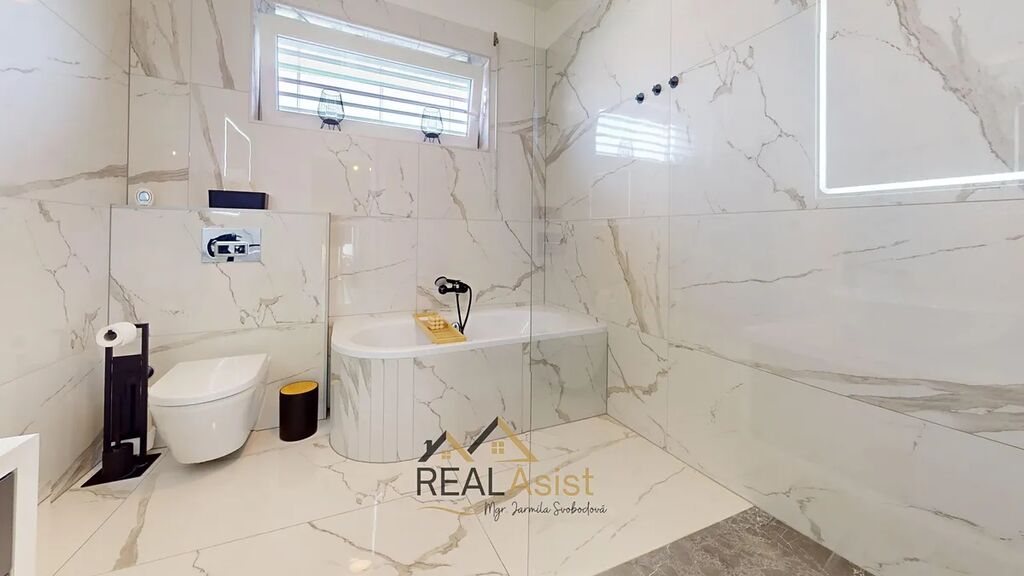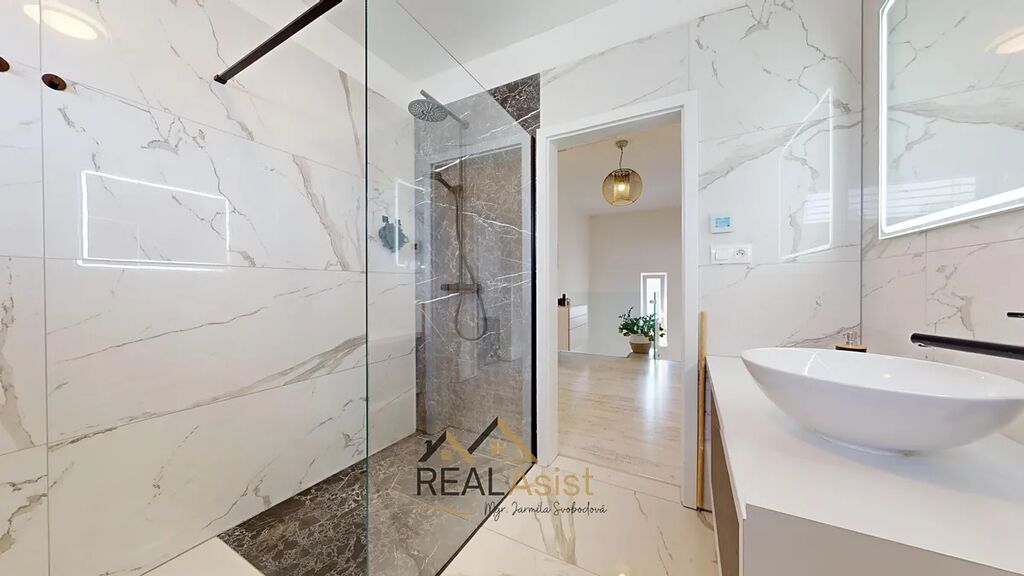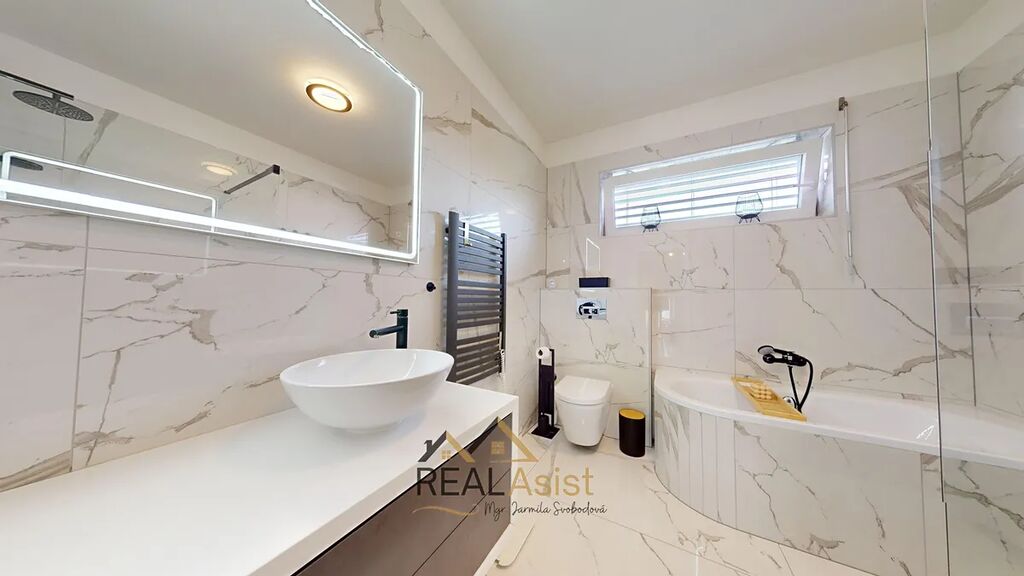 - 2 koupelny s kvalitní sanitou a nadčasovým designem (koupelna ve 2NP disponuje sprchovým koutem i vanou)