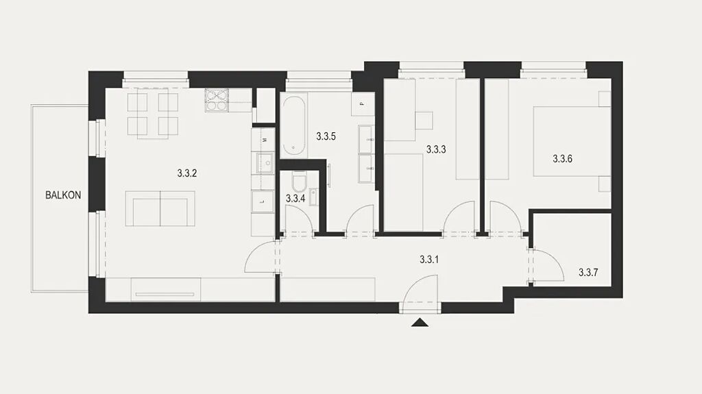 Předmětem nabídky je byt 3+kk s balkónem (7,31 m2), který nabízí výměru o podlahové ploše 74,34 m2. Dispozičně se člení na účelnou vstupní chodbu, koupelnu s vanou, umyvadlem a WC, samostatnou toaletu s umyvadlem, ložnici, dětský pokoj a hlavní obytnou místnost s kuchyňským koutem se vstupem na balkón. Byt je orientovaný na jihovýchod. Díky velkým balkonovým dveřím na balkón je v bytě dostatek přirozeného světla. Velkým benefitem je podélné okno v koupelně, které zajistí dostatek světla i odvětrání a praktická přizdívka u umyvadla. Balkón nabízí krásná rána, a i v parném létě příjemný odpočinek. Třetí patro také výhled z výšky do krajiny.