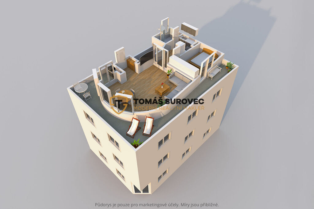 Atraktivní byt k pronájmu, který i s terasou disponuje celkovou rozlohou 98 m², se nachází ve 3. patře domu na adrese Štefánikova 159, přímo nad vyhlášenou restaurací Umbrella, možnost nastěhování od 1.12.2025.
