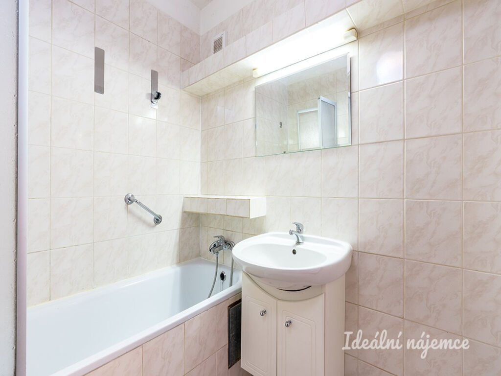Samostatná koupelna je vybavena vanou, přípojkou na pračku a umyvadlem.